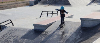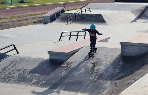 - d'un espace pumptrack 2 niveaux : débutant et confirmé (soit un parcours en boucle, composé de bosses et de virages relevés) et une rampe acrobatique.