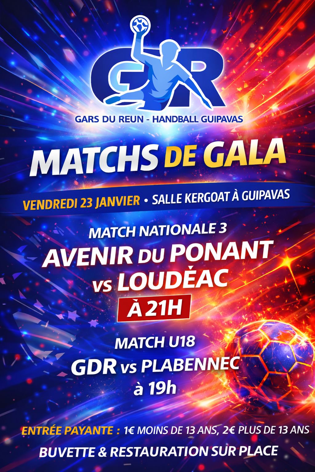 Les Gars du Reun handball organise une soirée de matchs de gala le vendredi 23 janvier 2026.