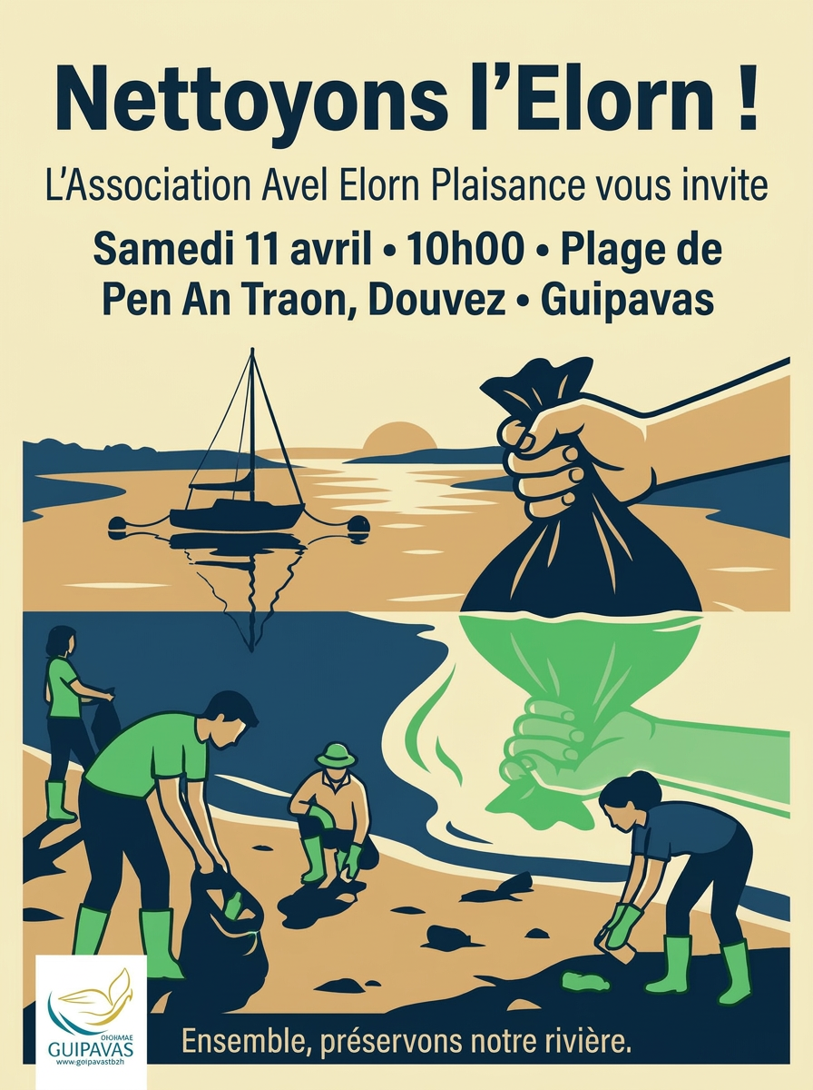 Rendez-vous samedi 11 avril à 10h à la plage de Pen An Traon au Douvez pour le nettoyage de printemps des rives de l’Élorn !