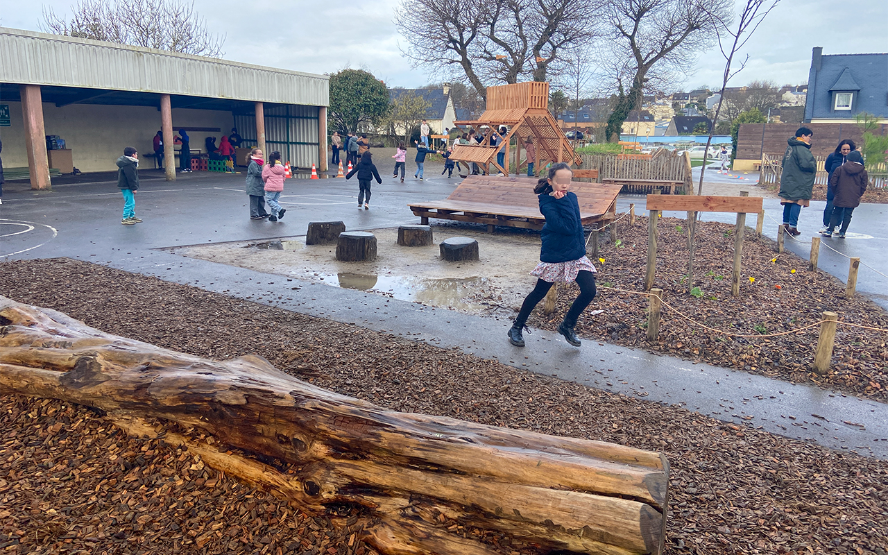 Cette transformation favorise le bien-être des enfants. La directrice de l’école Naïg Etienne constate d’ailleurs « beaucoup moins de tensions et de conflits sur la cour. C’est une grande réussite. Les enfants comme les enseignants se sont bien approprié l’espace. » À terme, la biodiversité et le rafraîchissement de la cour avec une baisse mesurée de la température pouvant atteindre 4°C au printemps devraient être constatés. Enfin, Anne Delaroche, adjointe aux affaires scolaires, souligne, avec le sourire, de nouvelles pratiques apparues avec Chifoumi : « Les élèves adorent balayer les copeaux de bois ! Plus sérieusement, Chifoumi a contribué à renforcer le lien entre école, territoire et acteurs locaux. Ce qui permet de parler d’un véritable projet participatif. »