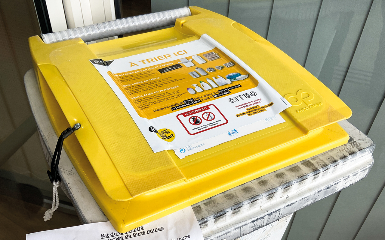 Afin de limiter, les jours de grand vent, la dispersion sur la voie publique des déchets plastiques et autres barquettes, Brest métropole propose à ses habitants un système de fermeture pour les bacs à couvercle jaune.