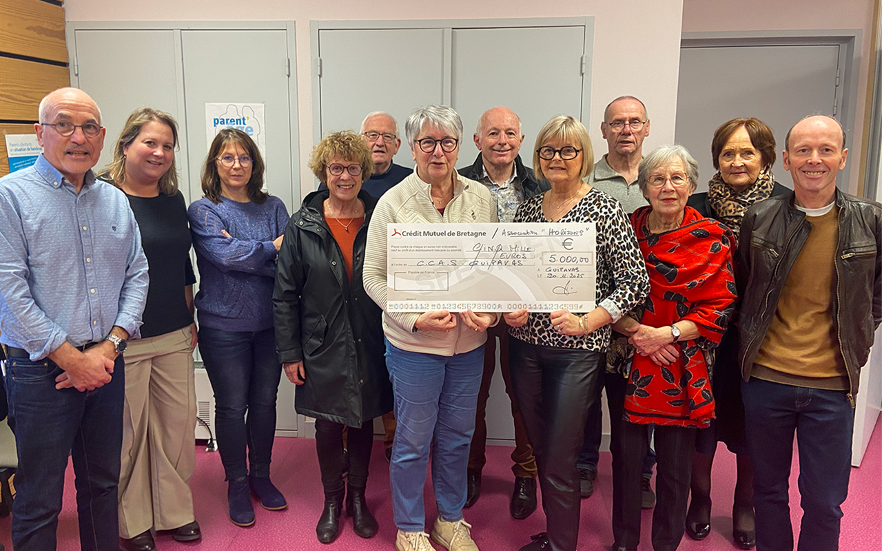 Jeudi 20 novembre 2025, l’association Horizons de Guipavas à travers son président Jakez Le Dall a remis un chèque de 5000 € au centre communal d’action sociale (CCAS) de Guipavas. Ce « coup de pouce » se veut une preuve de soutien aux actions sociales de proximité sur la commune.