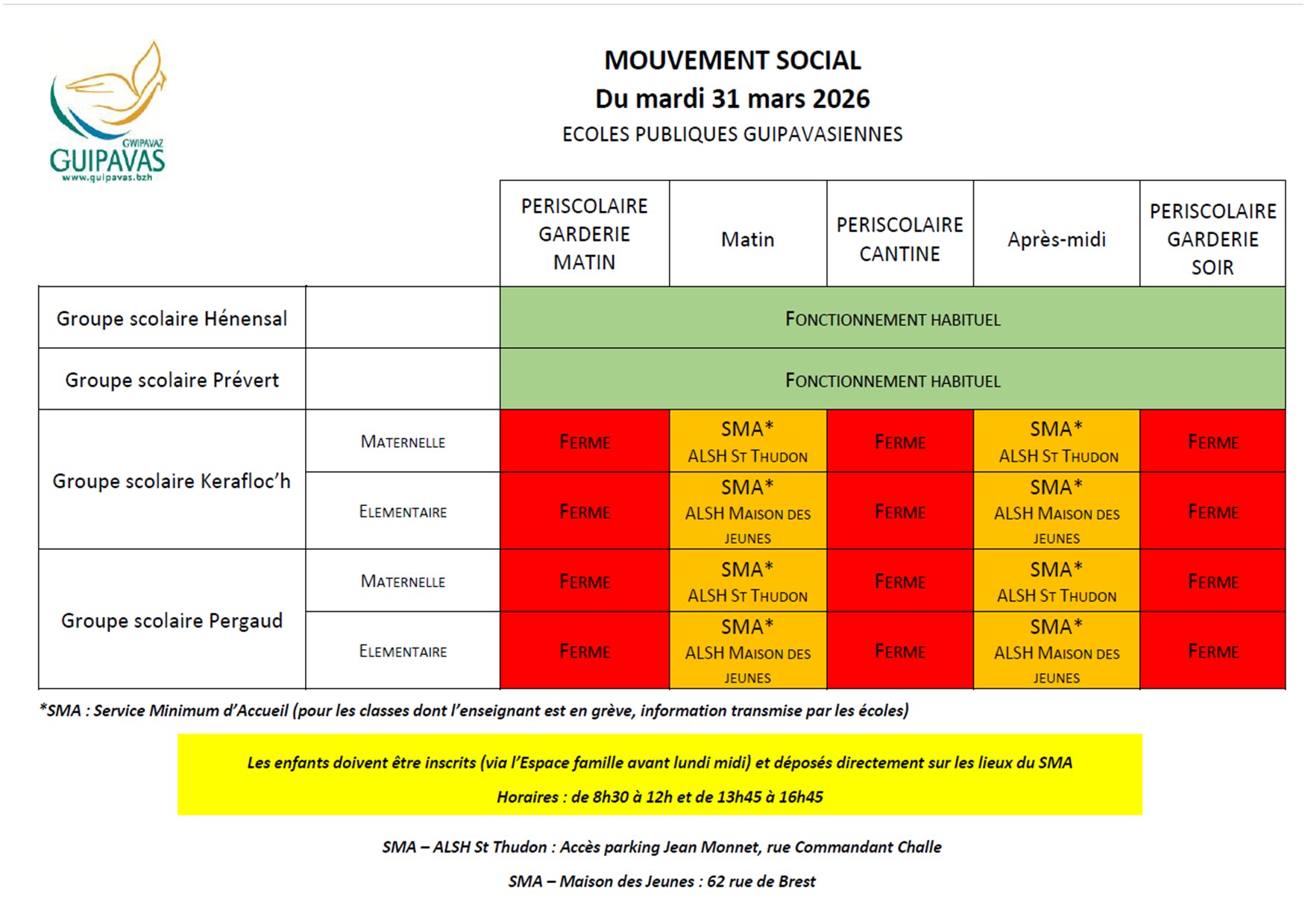 Retrouvez sur le site de l’Espace famille les informations relatives à ce mouvement pour les écoles publiques guipavasiennes.